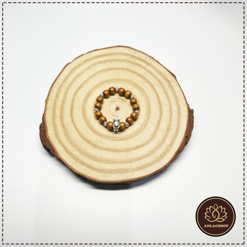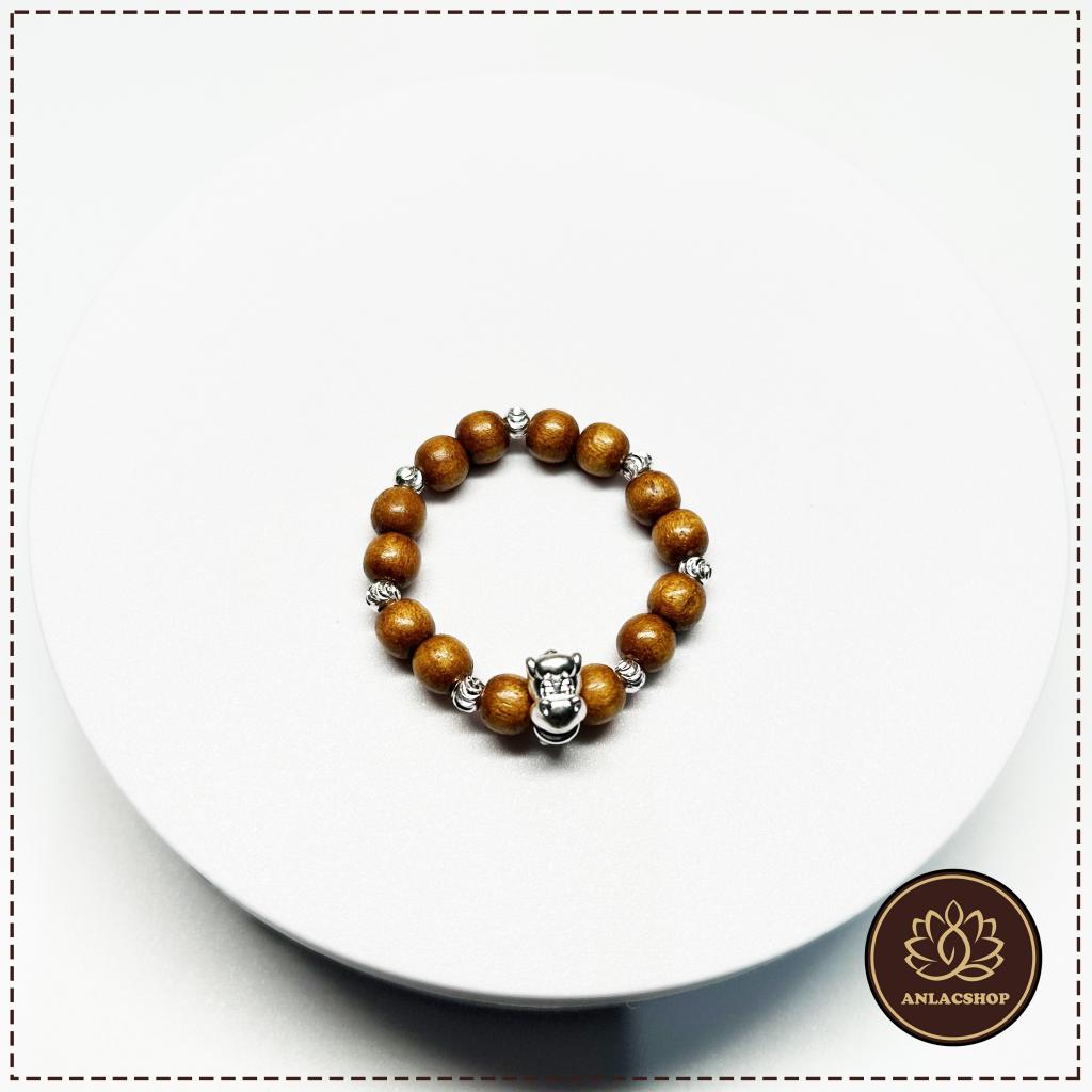 Vòng được thiết kế gốm các hạt dâu tằm gốc tự nhiên kết hợp cùng 7 viên bi bạc và charm giáp Ngọ bằng bạc.